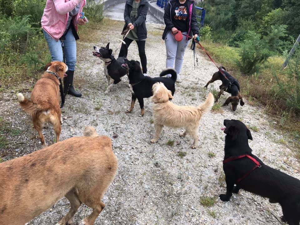 Tenemos la suerte de contar con una pequeña cuadrilla de voluntarios, que llueva o nieve, se acercan al mini albergue a sacar de paseo a nuestros acogidos.